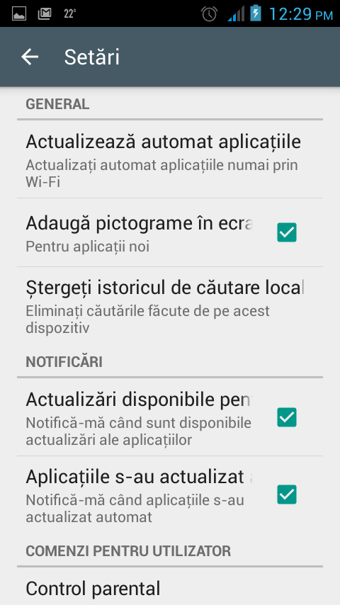 Pentru a verifica acest aspect, deschidem Magazinul Google şi ne îndreptăm atenţia la meniul de navigaţie din partea stângă (cele 3 bare verticale). Se apasă pe Setări şi, în partea de sus, la categoria General, se observă opţiunea care permite dezactivarea autoupdate-ului. Selectaţi "Nu actualizaţi automat aplicaţiile" sau "Actualizaţi automat aplicaţiile numai prin Wi-Fi."
