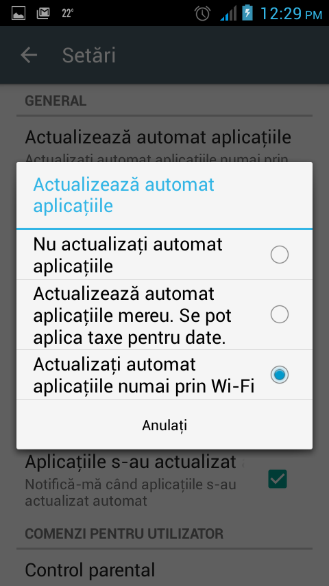 4. Dezactivarea actualizării automate a aplicaţiilor