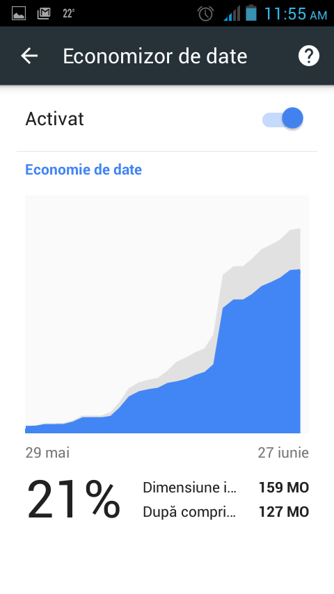 Restul, giganţii Orange şi Vodafone (Telekom încă nu contează) sunt extraordinar de zgârciţi cu ofertele de internet mobil. Chiar dacă am toată familia trecută pe RCS&RDS, eu sunt încă obligat să plătesc un abonament de 10€ la Orange până în septembrie anul viitor (când voi trece obligatoriu la RCS), care îmi oferă 320 MB DOAR până în martie, urmând ca apoi să scadă la 160... Aşa că sunt direct interesat de micşorarea consumului de date care circulă între telefonul meu şi oceanul de informaţii exterioare numit Internet.