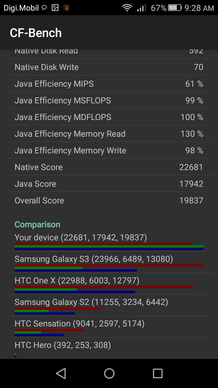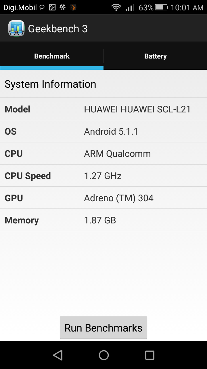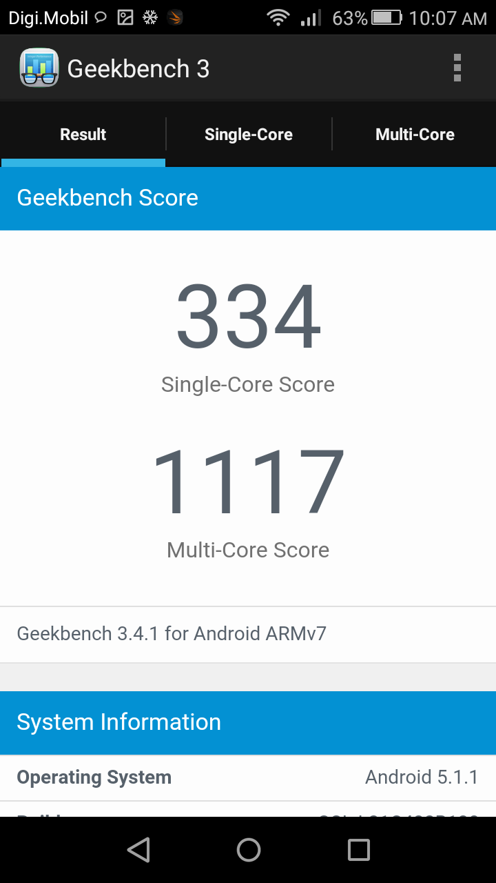 | Geekbench 3 | single-core: 334; multi-core: 1117 |