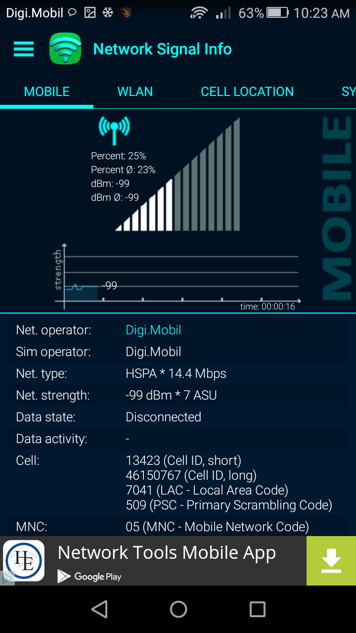 Am activat 4G din rețeaua DigiMobil la numărul *111# (opțiunea 7). SMS-ul de confirmare a venit după 2-3 minute. Din păcate, deși în Iași este LTE de la RCS&RDS, Huawei Y6 nu funcționează cu 4G DigiMobil, așa că am schimbat setările de rețea de la 4G/3G/2G la 3G/2G.