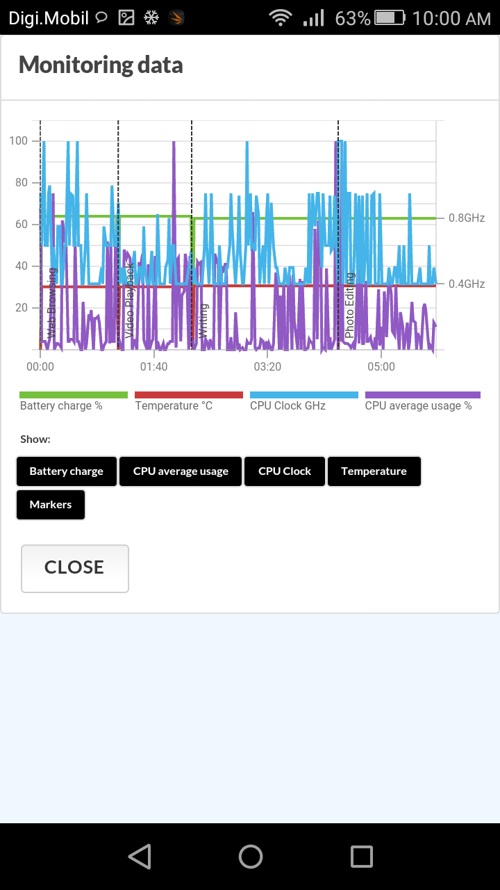 Timpul de încărcare a bateriei a fost de 110 minute (aproape 2 ore) de la 14% la plin complet.